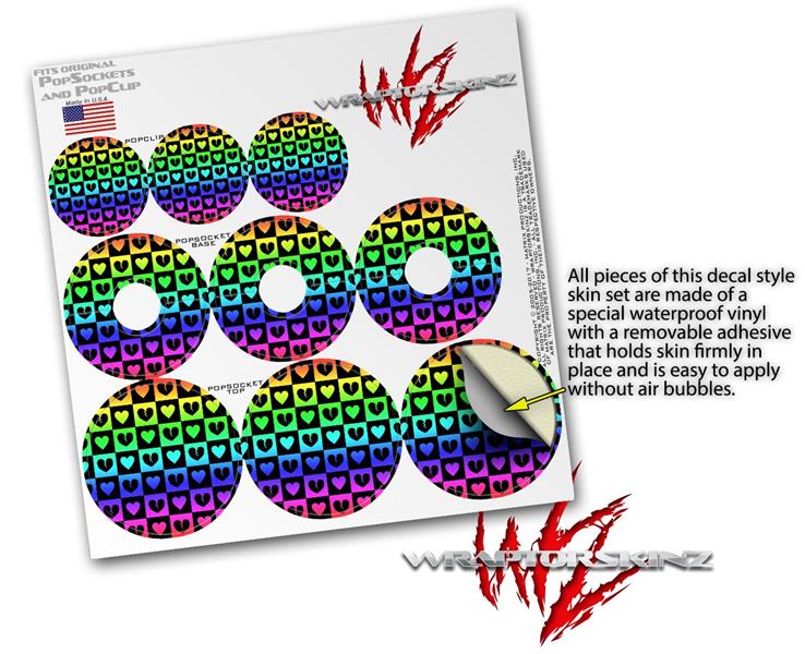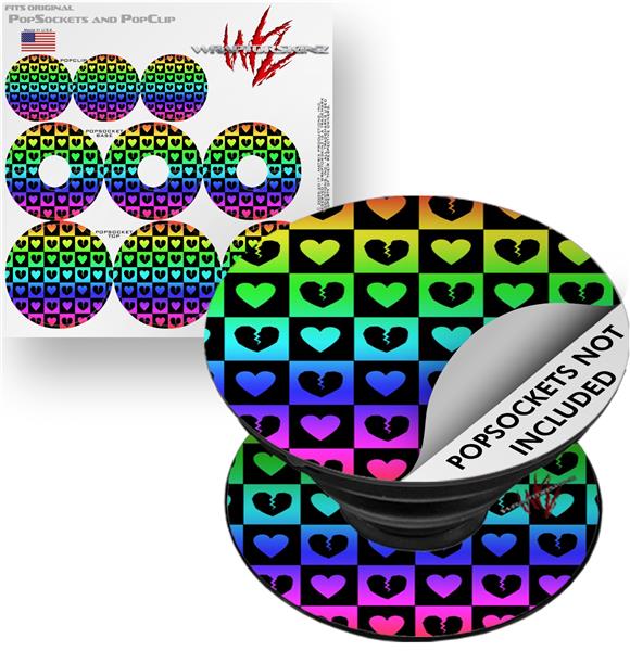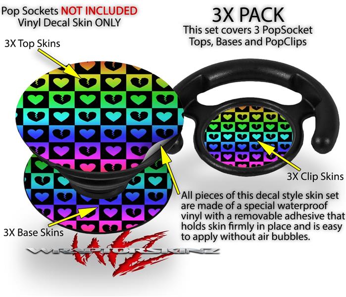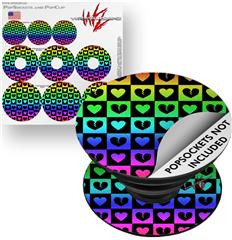Decal Style Vinyl Skin Wrap 3 Pack for PopSockets Love Heart Checkers Rainbow (POPSOCKET NOT INCLUDED)