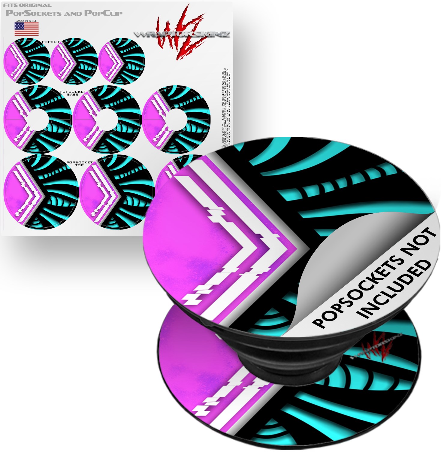 Decal Style Vinyl Skin Wrap 3 Pack for PopSockets Black Waves Neon Teal Hot Pink (POPSOCKET NOT INCLUDED)