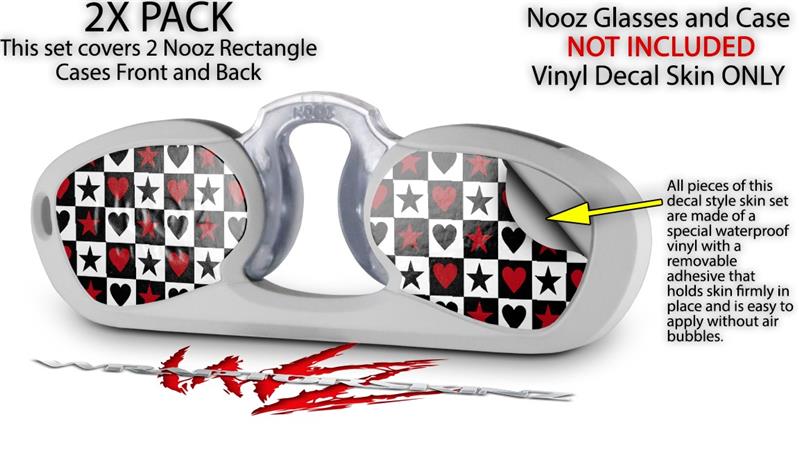 Decal Style Vinyl Skin Wrap 2 Pack for Nooz Glasses Rectangle Case Hearts and Stars Red (NOOZ NOT INCLUDED) by WraptorSkinz