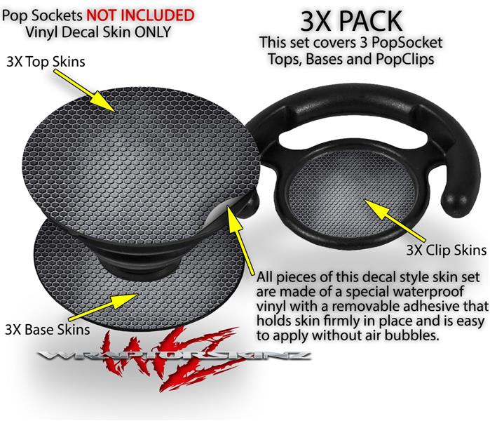 Decal Style Vinyl Skin Wrap 3 Pack for PopSockets Mesh Metal Hex (POPSOCKET NOT INCLUDED)