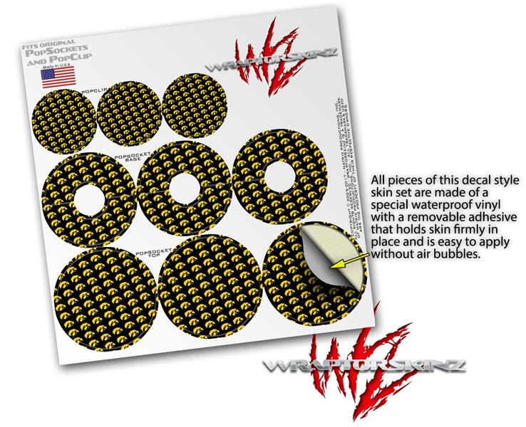 Decal Style Vinyl Skin Wrap 3 Pack for PopSockets Iowa Hawkeyes Tigerhawk Tiled 06 Gold on Black (POPSOCKET NOT INCLUDED)