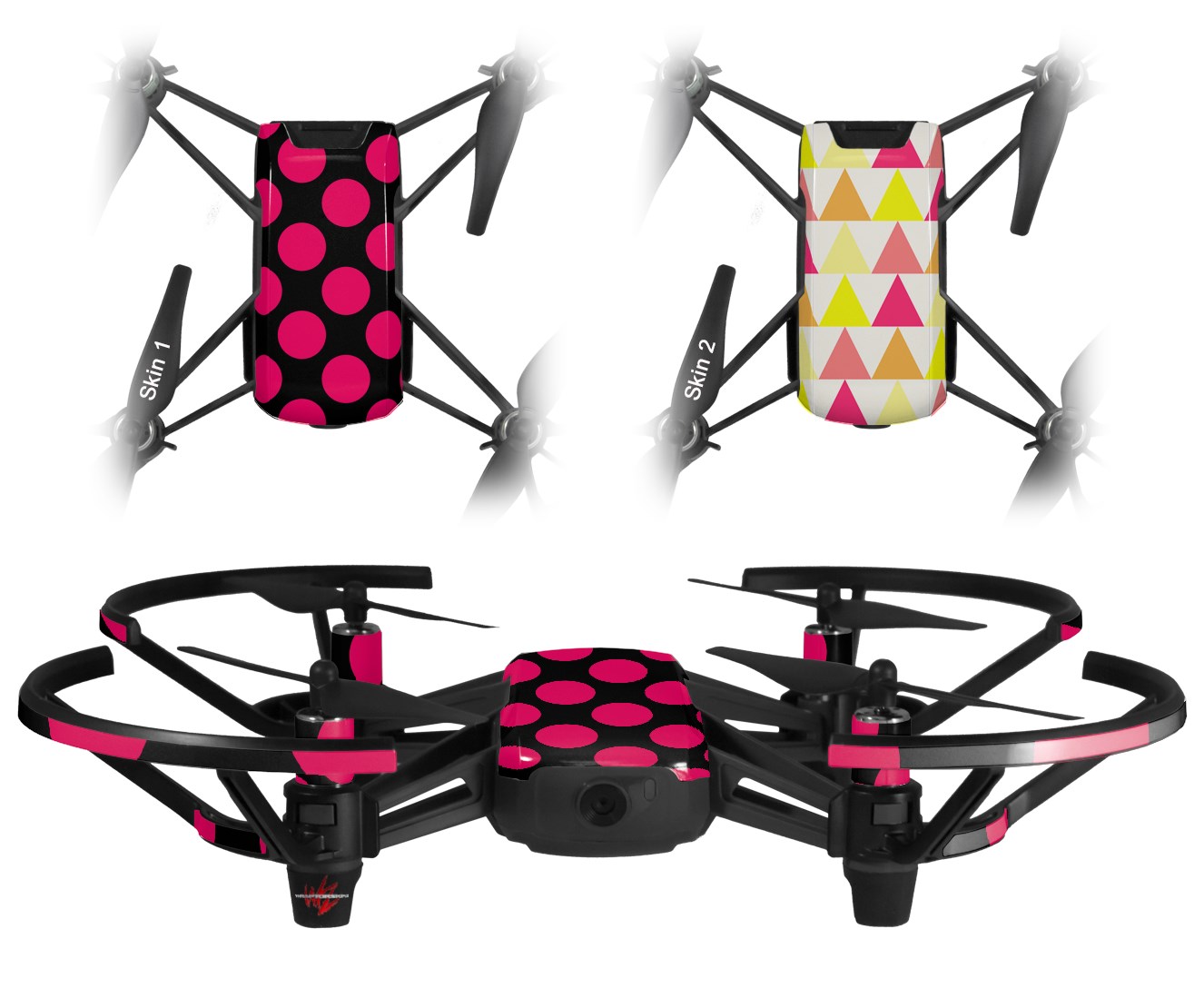 Skin Decal Wrap 2 Pack for DJI Ryze Tello Drone Kearas Polka Dots Pink On Black DRONE NOT INCLUDED