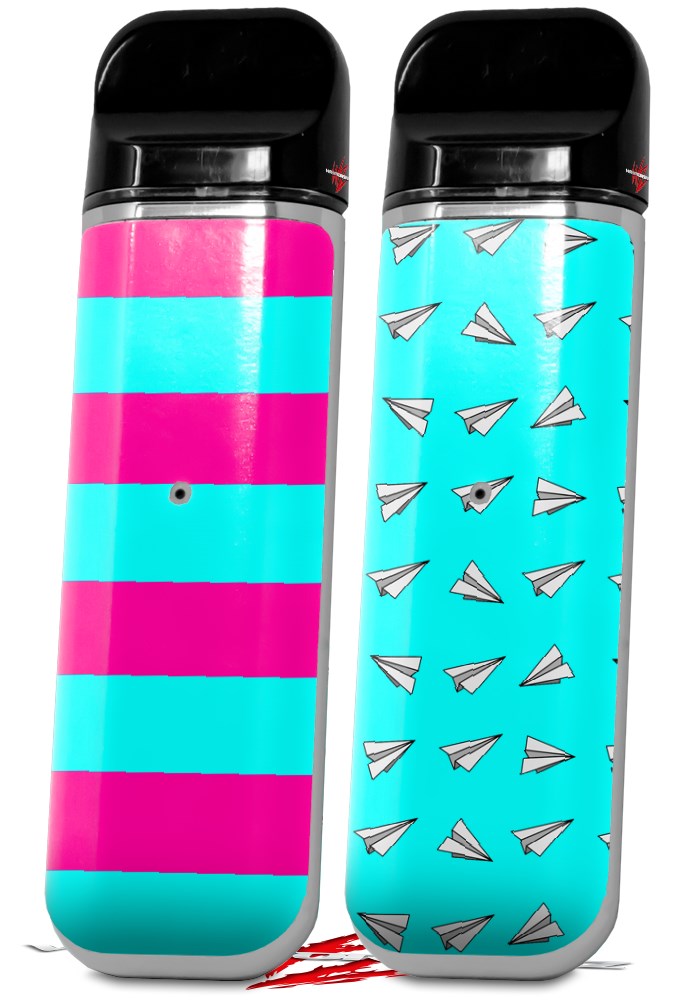 Skin Decal Wrap 2 Pack for Smok Novo v1 Psycho Stripes Neon Teal and Hot Pink VAPE NOT INCLUDED