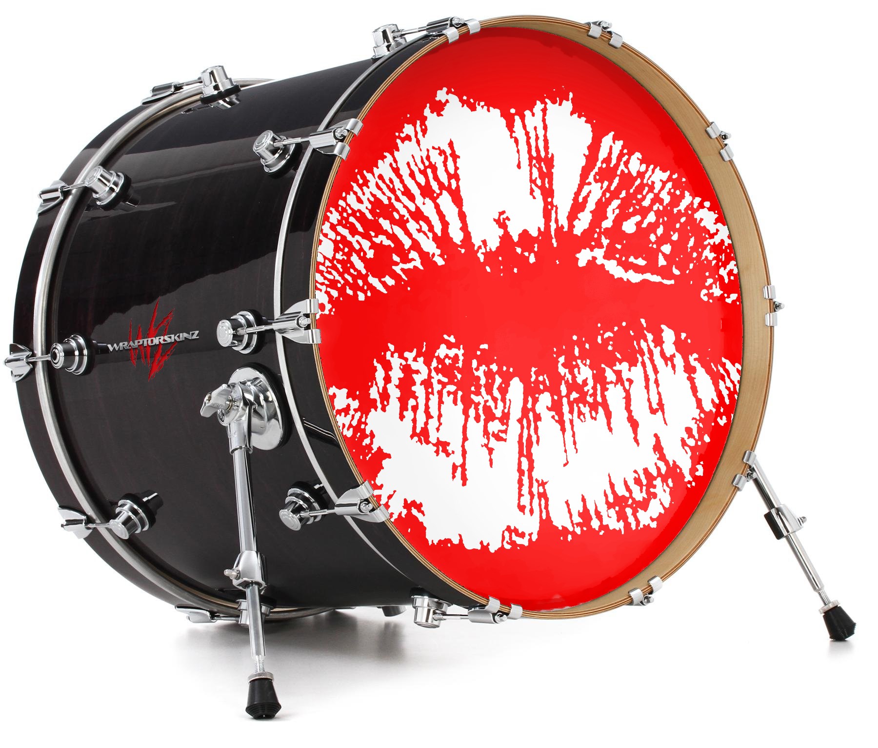 Vinyl Decal Skin Wrap for 22" Bass Kick Drum Head Big Kiss White on Red - DRUM HEAD NOT INCLUDED