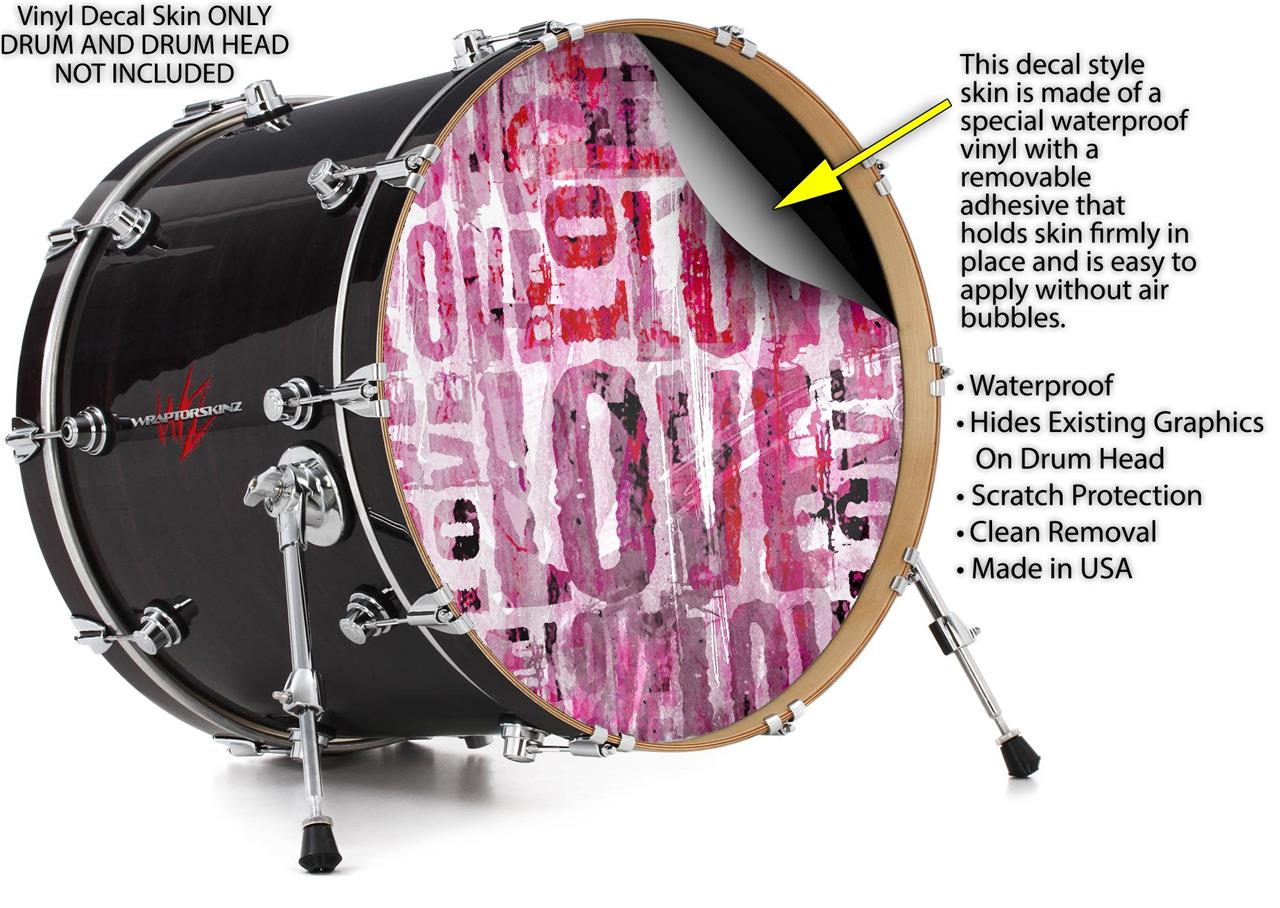 Vinyl Decal Skin Wrap for 22" Bass Kick Drum Head Grunge Love - DRUM HEAD NOT INCLUDED