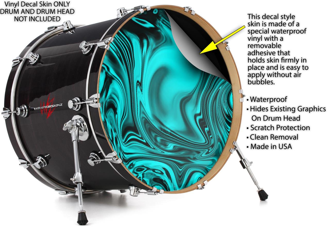 Vinyl Decal Skin Wrap for 20" Bass Kick Drum Head Liquid Metal Chrome Neon Teal - DRUM HEAD NOT INCLUDED