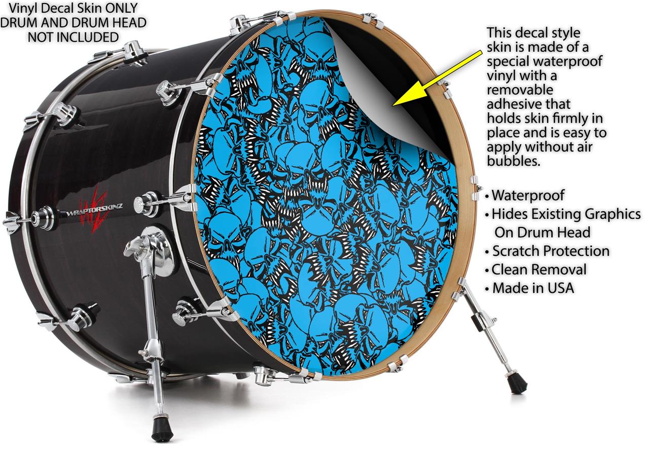 Vinyl Decal Skin Wrap for 20" Bass Kick Drum Head Scattered Skulls Neon Blue - DRUM HEAD NOT INCLUDED
