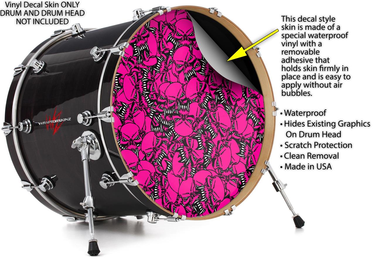 Vinyl Decal Skin Wrap for 20" Bass Kick Drum Head Scattered Skulls Hot Pink - DRUM HEAD NOT INCLUDED