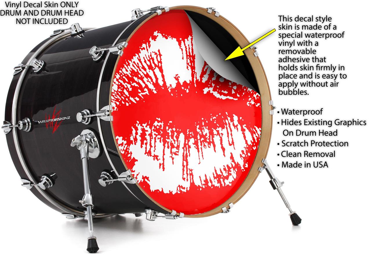Vinyl Decal Skin Wrap for 20" Bass Kick Drum Head Big Kiss White on Red - DRUM HEAD NOT INCLUDED
