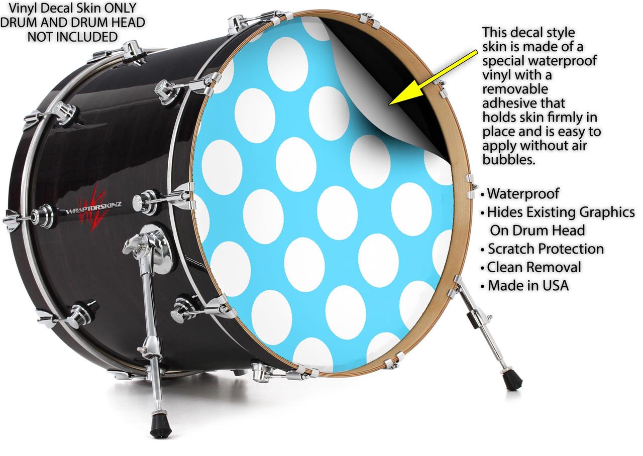 Vinyl Decal Skin Wrap for 20" Bass Kick Drum Head Kearas Polka Dots White And Blue - DRUM HEAD NOT INCLUDED