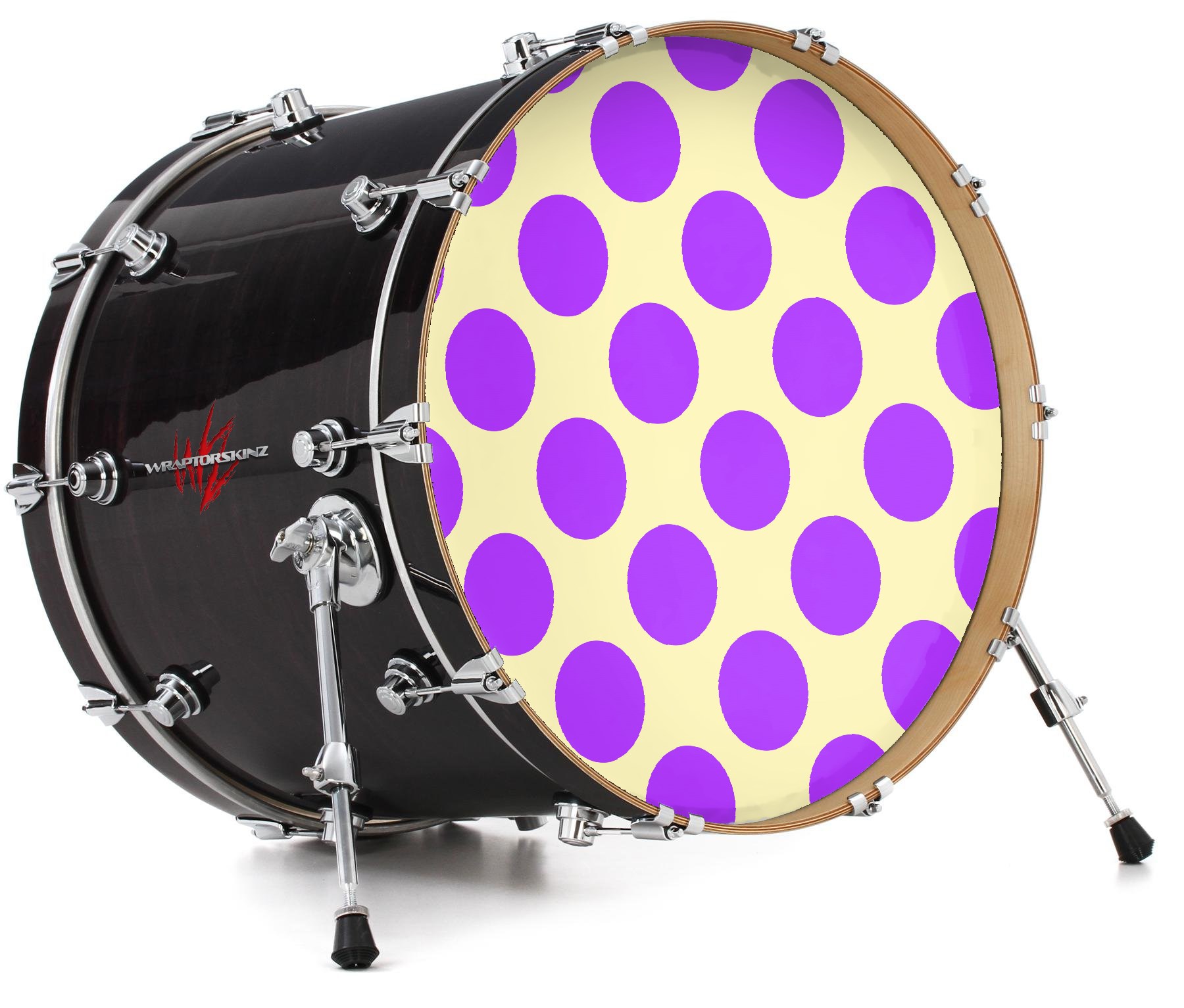 Vinyl Decal Skin Wrap for 20" Bass Kick Drum Head Kearas Polka Dots Purple On Cream - DRUM HEAD NOT INCLUDED