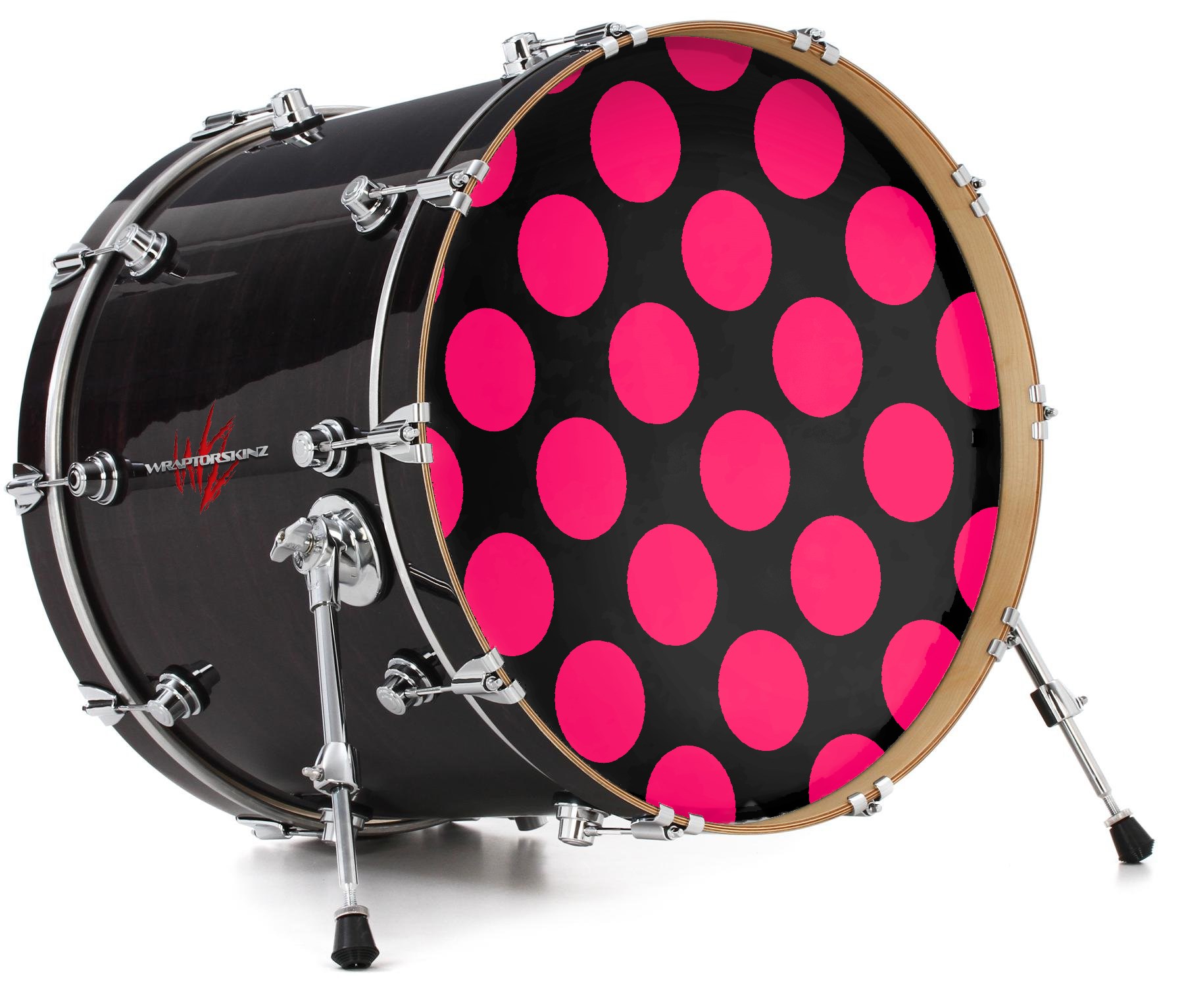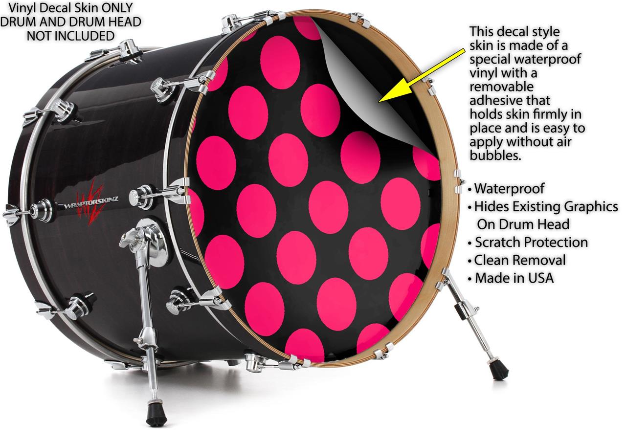 Vinyl Decal Skin Wrap for 20" Bass Kick Drum Head Kearas Polka Dots Pink On Black - DRUM HEAD NOT INCLUDED