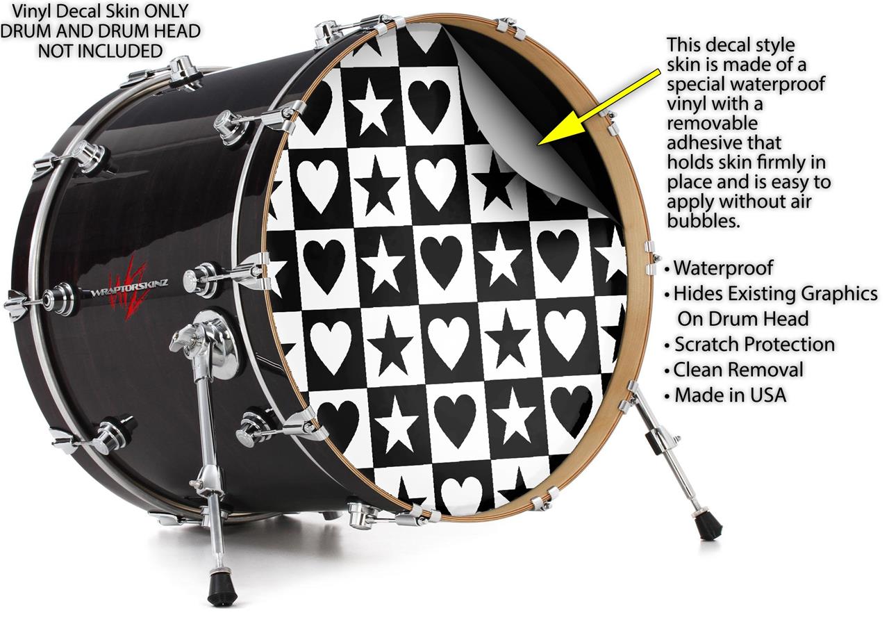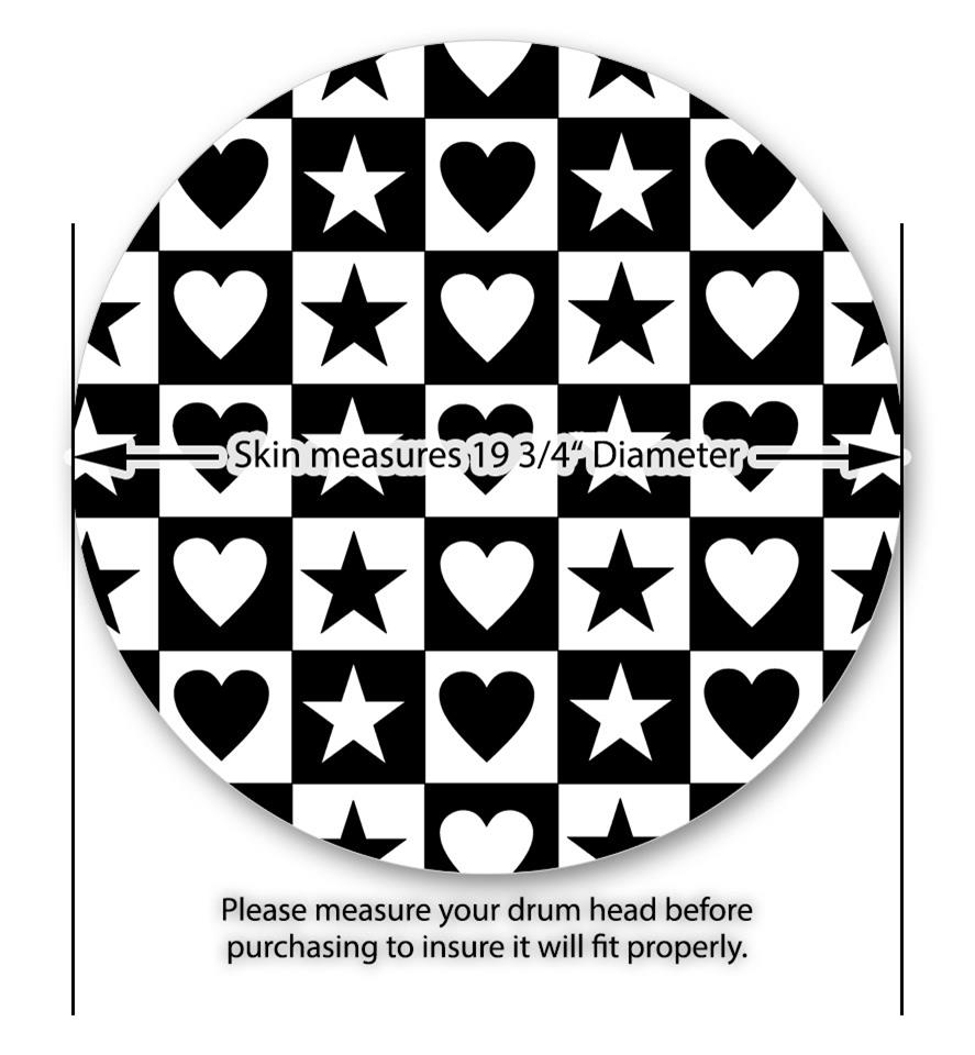 Vinyl Decal Skin Wrap for 20" Bass Kick Drum Head Hearts And Stars Black and White - DRUM HEAD NOT INCLUDED
