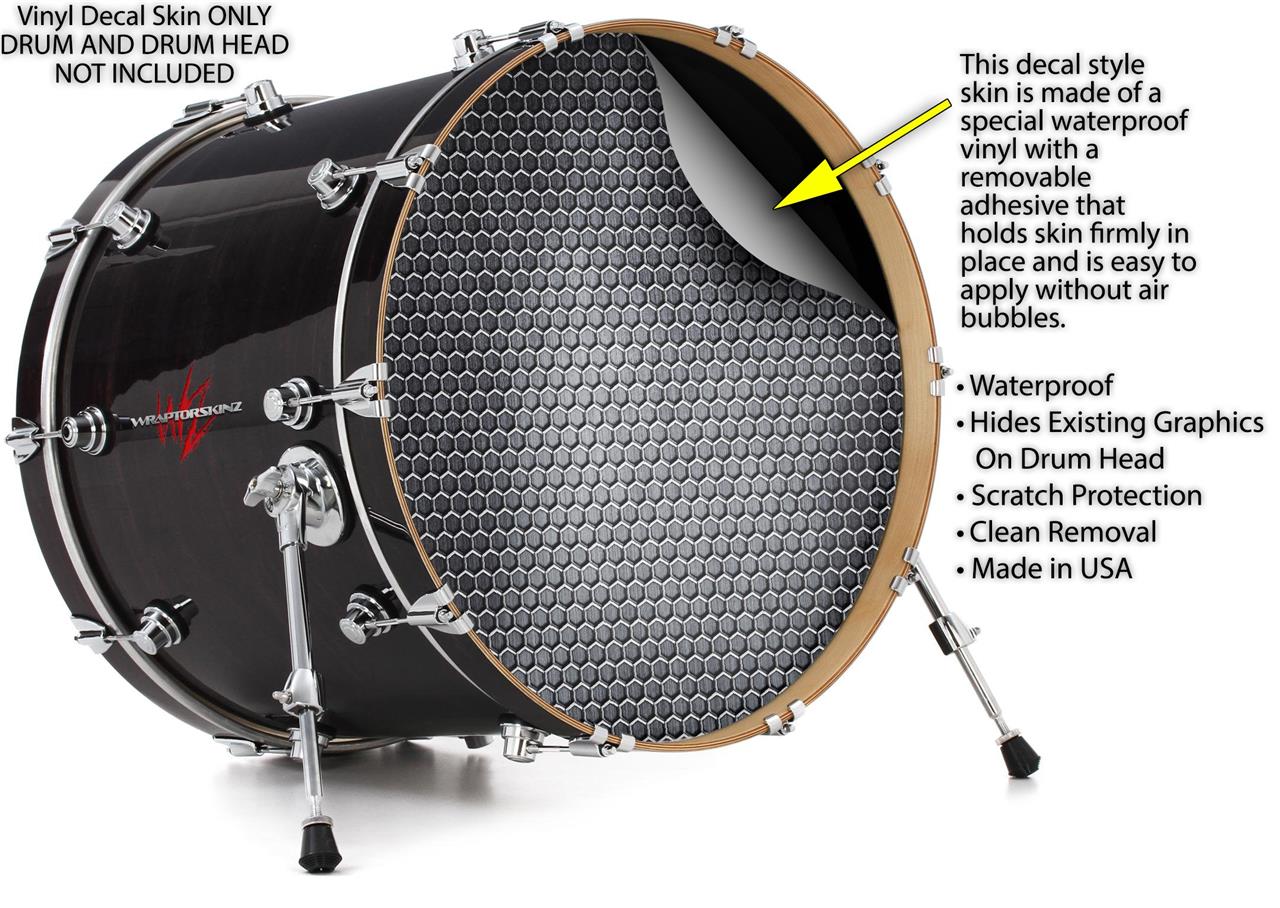 Vinyl Decal Skin Wrap for 22" Bass Kick Drum Head Mesh Metal Hex - DRUM HEAD NOT INCLUDED