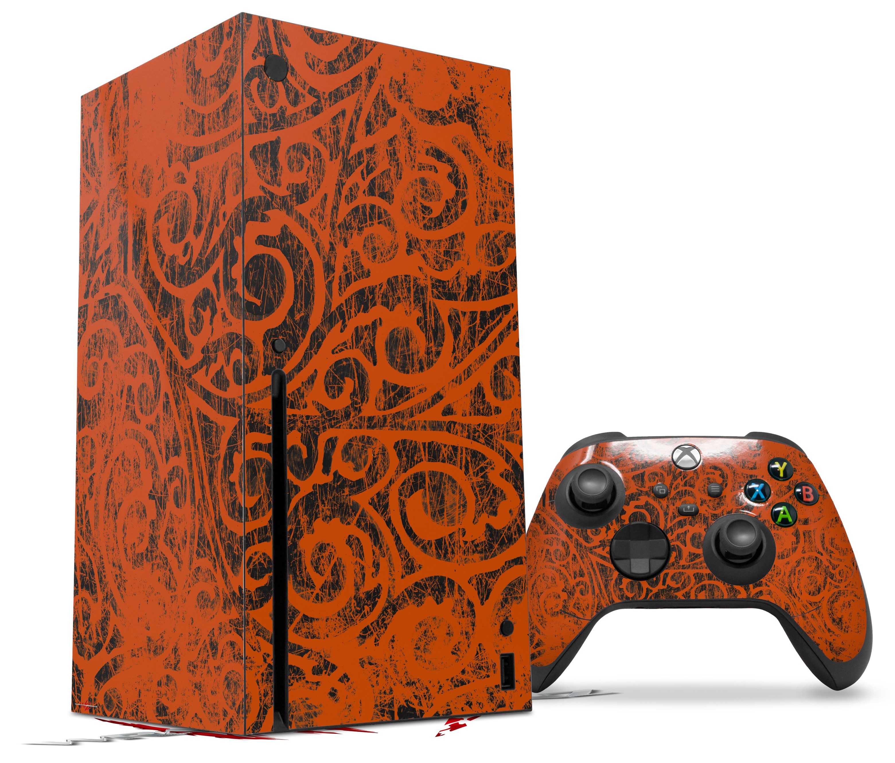 WraptorSkinz Skin Wrap compatible with the 2020 XBOX Series X Console and Controller Folder Doodles Burnt Orange (XBOX NOT INCLUDED)