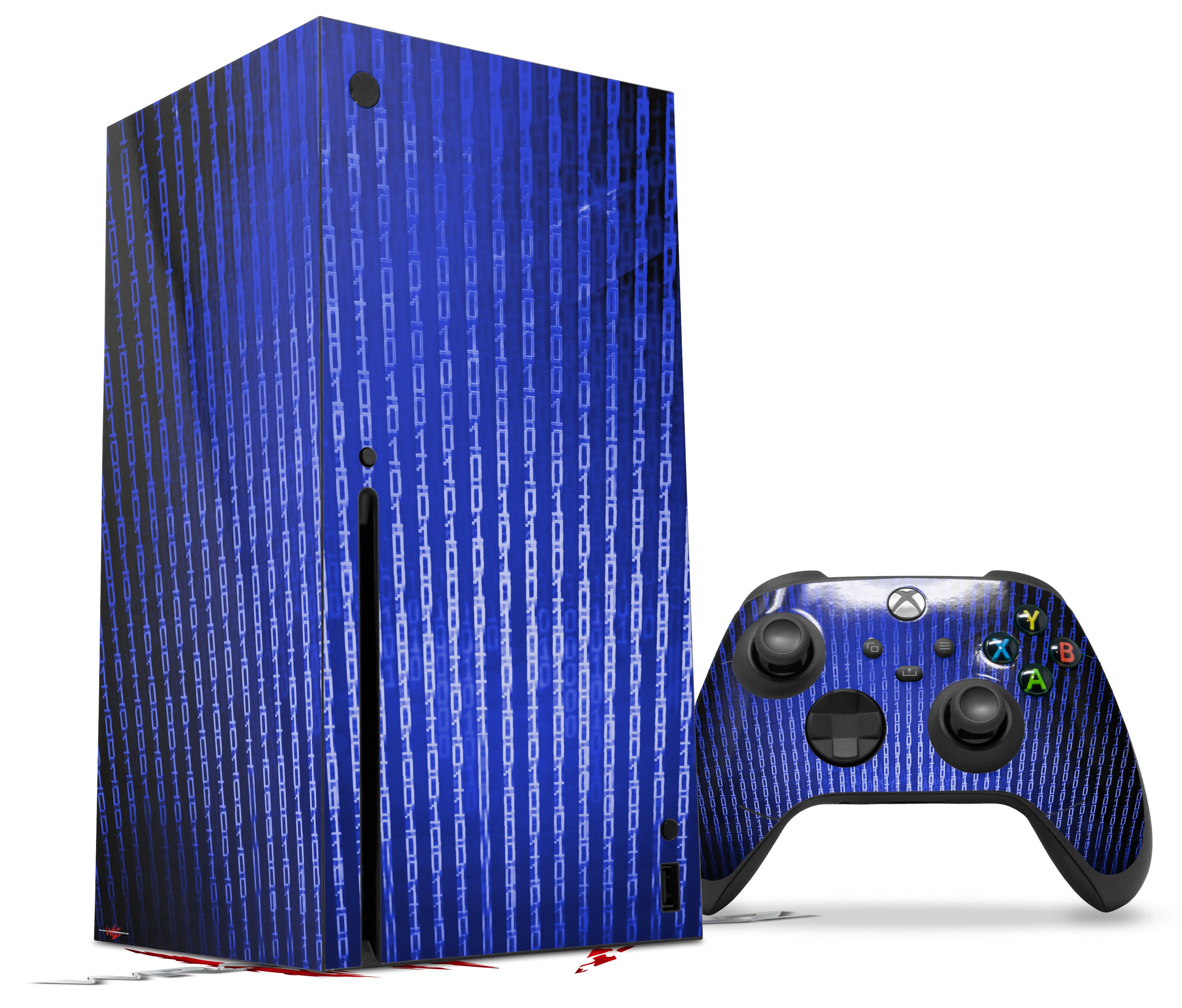 WraptorSkinz Skin Wrap compatible with the 2020 XBOX Series X Console and Controller Binary Rain Blue (XBOX NOT INCLUDED)