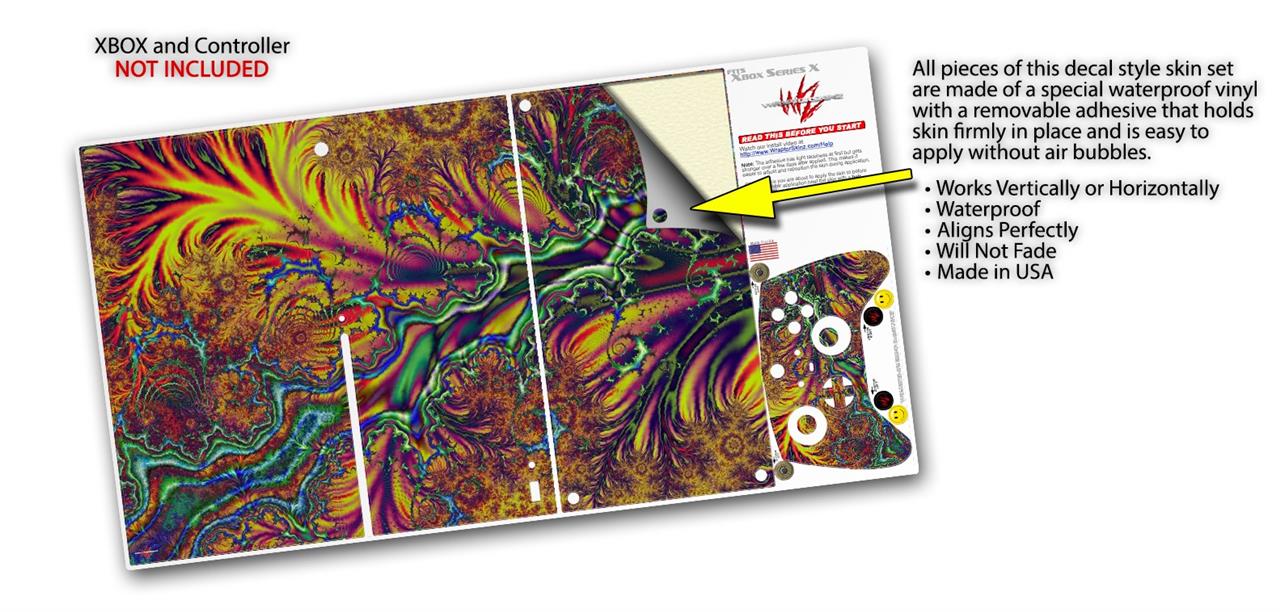WraptorSkinz® skin wraps for the XBOX Series X gaming console and controller reelase November 2020 are printed using superb photo quality designs and vibrant colors printed with special fade resistant inks that last even in direct sun for years. WraptorSkinz are a composite of two layers of commercial grade materials. The bottom layer is a soft, flexible vinyl with a special removable adhesive that is easily positioned, applied without air bubbles. Next we print the bottom layer with UV protected, fade resistant inks that deliver superb photo quality designs in vibrant colors. Last, we bond a professional grade laminate over the entire skin adding a glossy protective finish. This product is not affiliated with or endorsed by Microsoft or the XBOX brand.