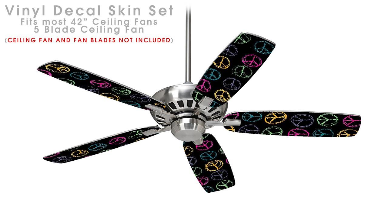 Kearas Peace Signs Black - Ceiling Fan Skin Kit fits most 42 inch fans (FAN and BLADES SOLD SEPARATELY)