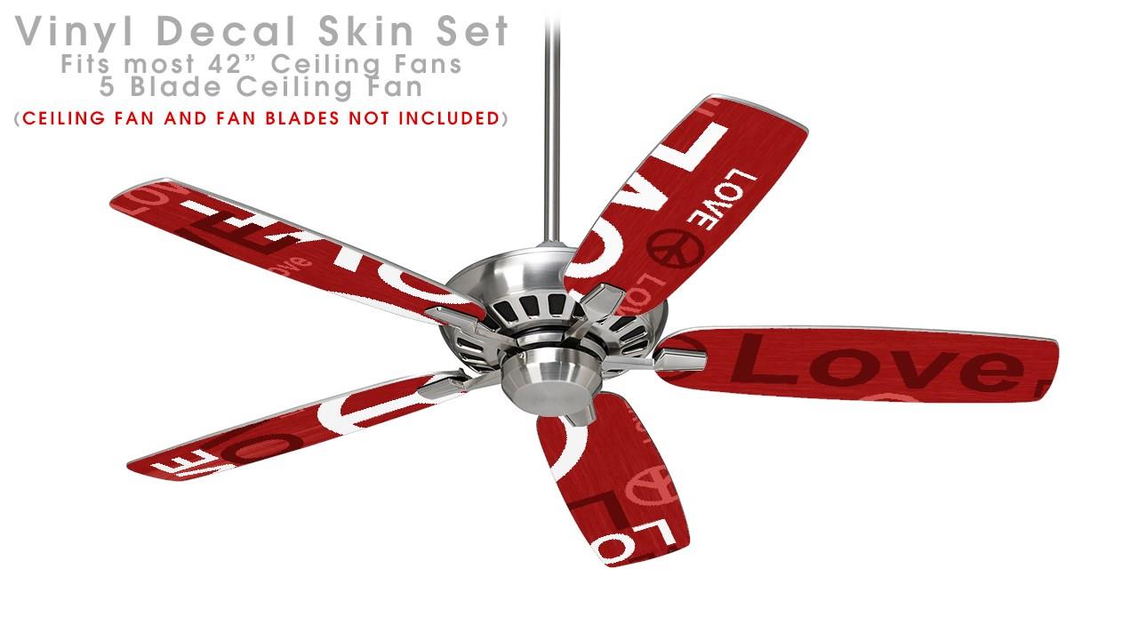 Love and Peace Red - Ceiling Fan Skin Kit fits most 42 inch fans (FAN and BLADES SOLD SEPARATELY)