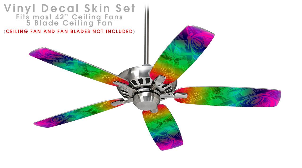 Rainbow Butterflies - Ceiling Fan Skin Kit fits most 42 inch fans (FAN and BLADES SOLD SEPARATELY)