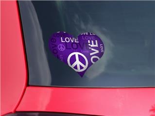 Love and Peace Purple - I Heart Love Car Window Decal 6.5 x 5.5 inches