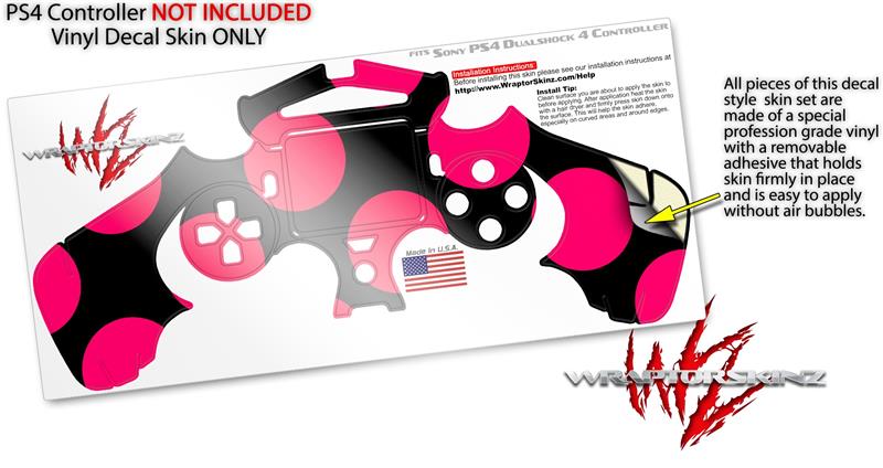 WraptorSkinz Skin compatible with Sony PS4 Dualshock Controller PlayStation 4 Original Slim and Pro Kearas Polka Dots Pink On Black (CONTROLLER NOT INCLUDED)