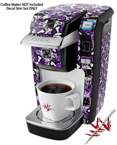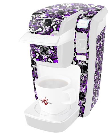 Decal Style Vinyl Skin compatible with Keurig K10 / K15 Mini Plus Coffee Makers Splatter Girly Skull Purple (KEURIG NOT INCLUDED)