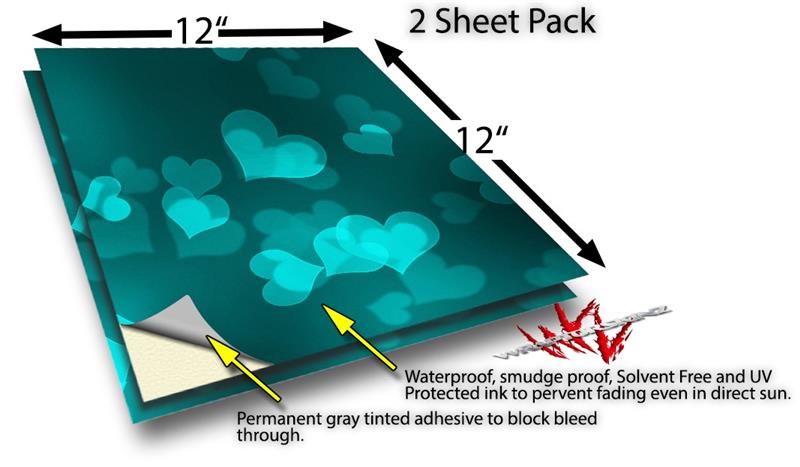 WraptoSkinz™ skin vinyl craft sheets are printed using superb photo quality designs and vibrant colors printed with special UV Protected fade resistant inks that last even in direct sun for years. Unlike other brands our inks are NOT solvent based. WraptorSkinz are a manufactured from professional grade 3mill vinyl. These sheets are waterproof, the designs will not run or smear even if submerged in water.