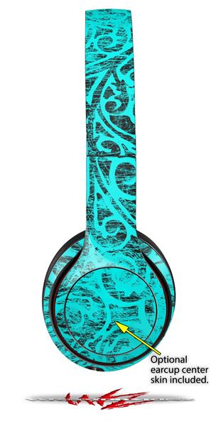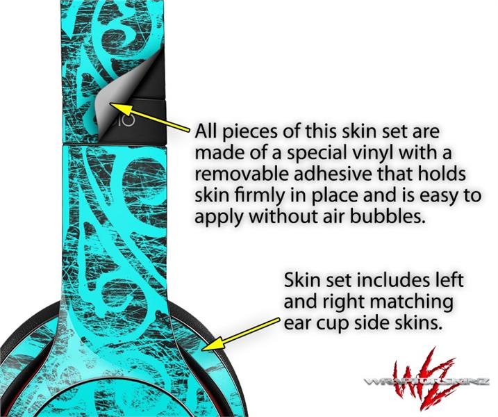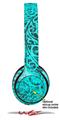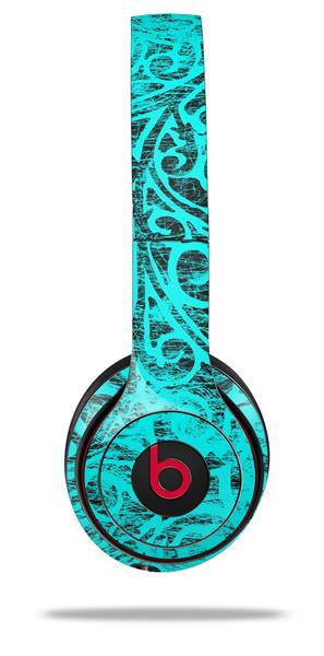 WraptorSkinz Skin Decal Wrap compatible with Beats Solo 2 and Solo 3 Wireless Headphones Folder Doodles Neon Teal (HEADPHONES NOT INCLUDED)