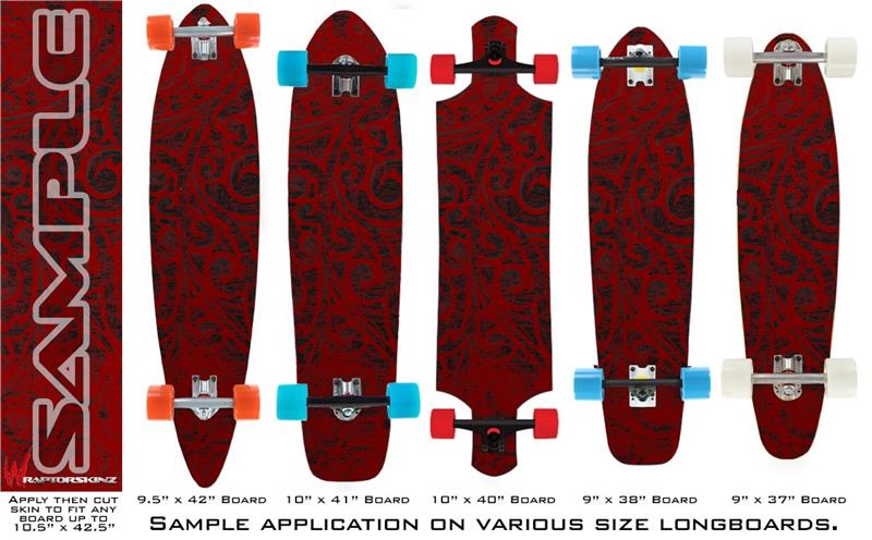 Our longboard skins are made so that one size fits boards up to 10” wide x 42” long. This means after applying the skin it you will trimming to fit you’re the shape of your board with a sharp utility knife.
