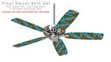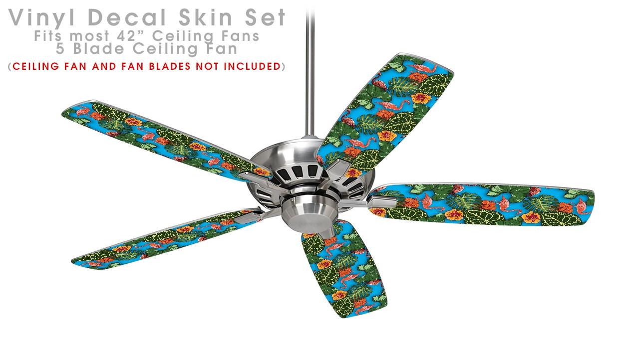 Famingos and Flowers Blue Medium - Ceiling Fan Skin Kit fits most 42 inch fans (FAN and BLADES SOLD SEPARATELY)
