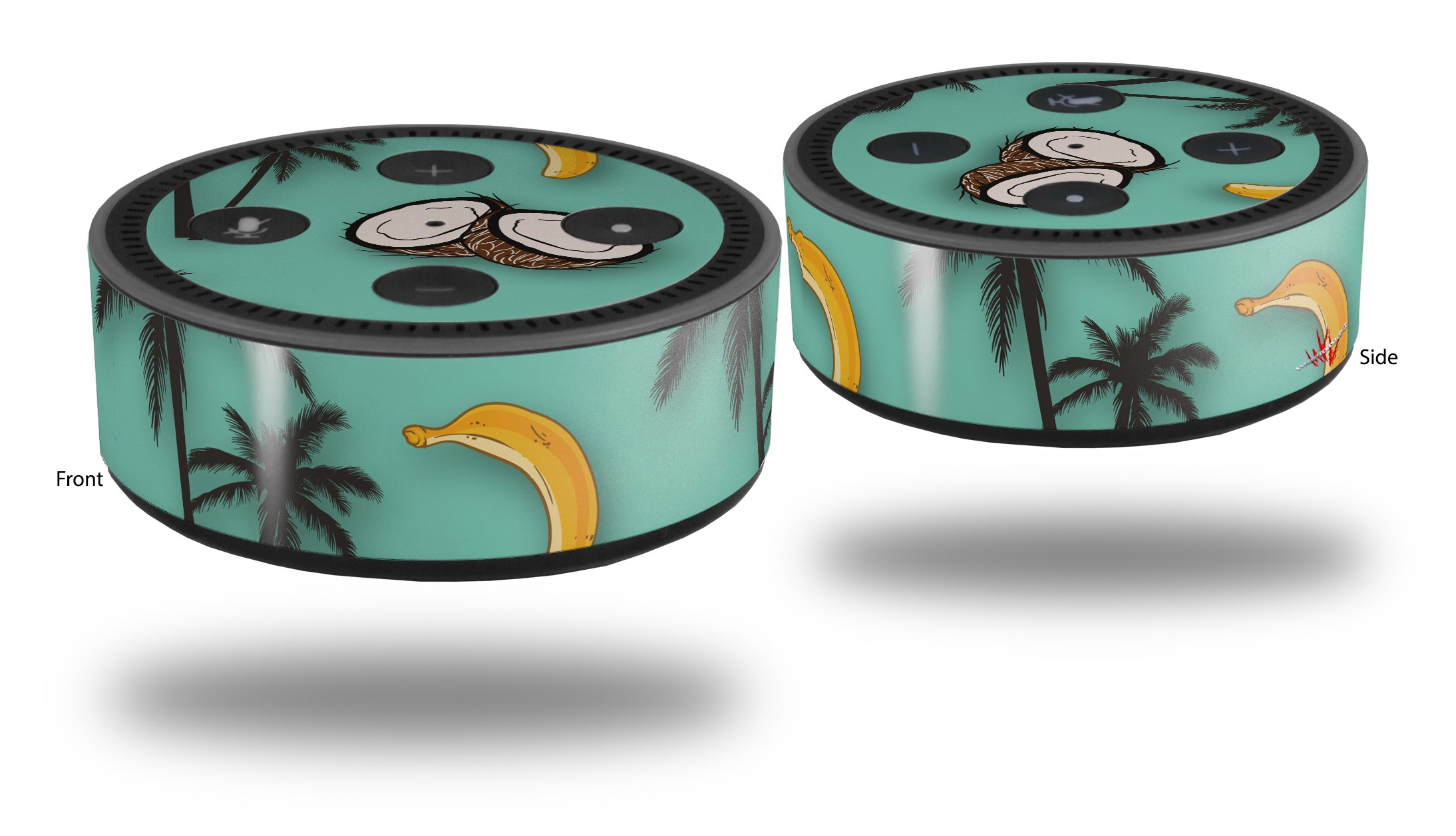 Skin Wrap Decal Set 2 Pack for Amazon Echo Dot 2 - Coconuts Palm Trees and Bananas Seafoam Green (2nd Generation ONLY - Echo NOT INCLUDED)