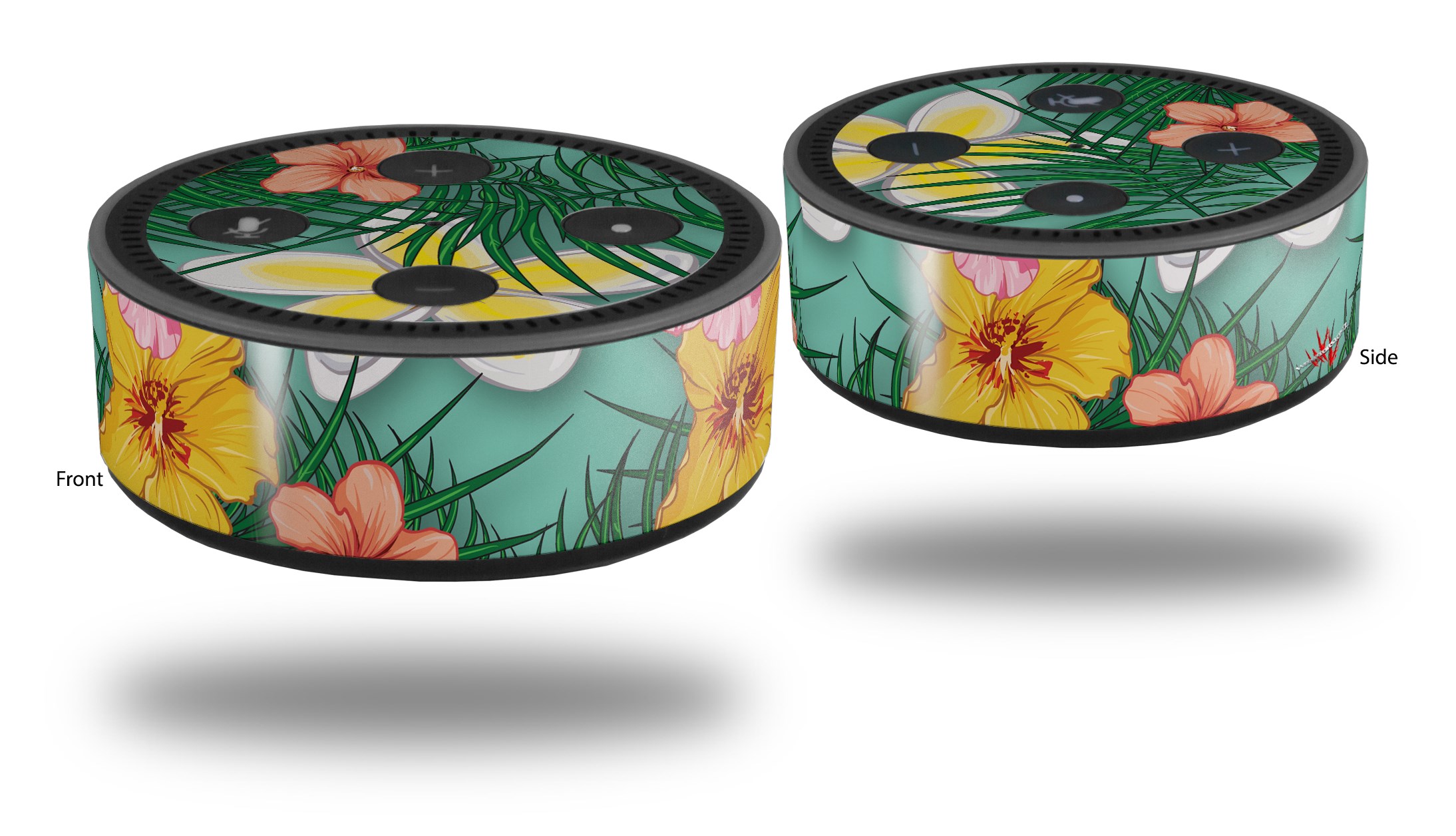 Skin Wrap Decal Set 2 Pack for Amazon Echo Dot 2 - Beach Flowers 02 Seafoam Green (2nd Generation ONLY - Echo NOT INCLUDED)