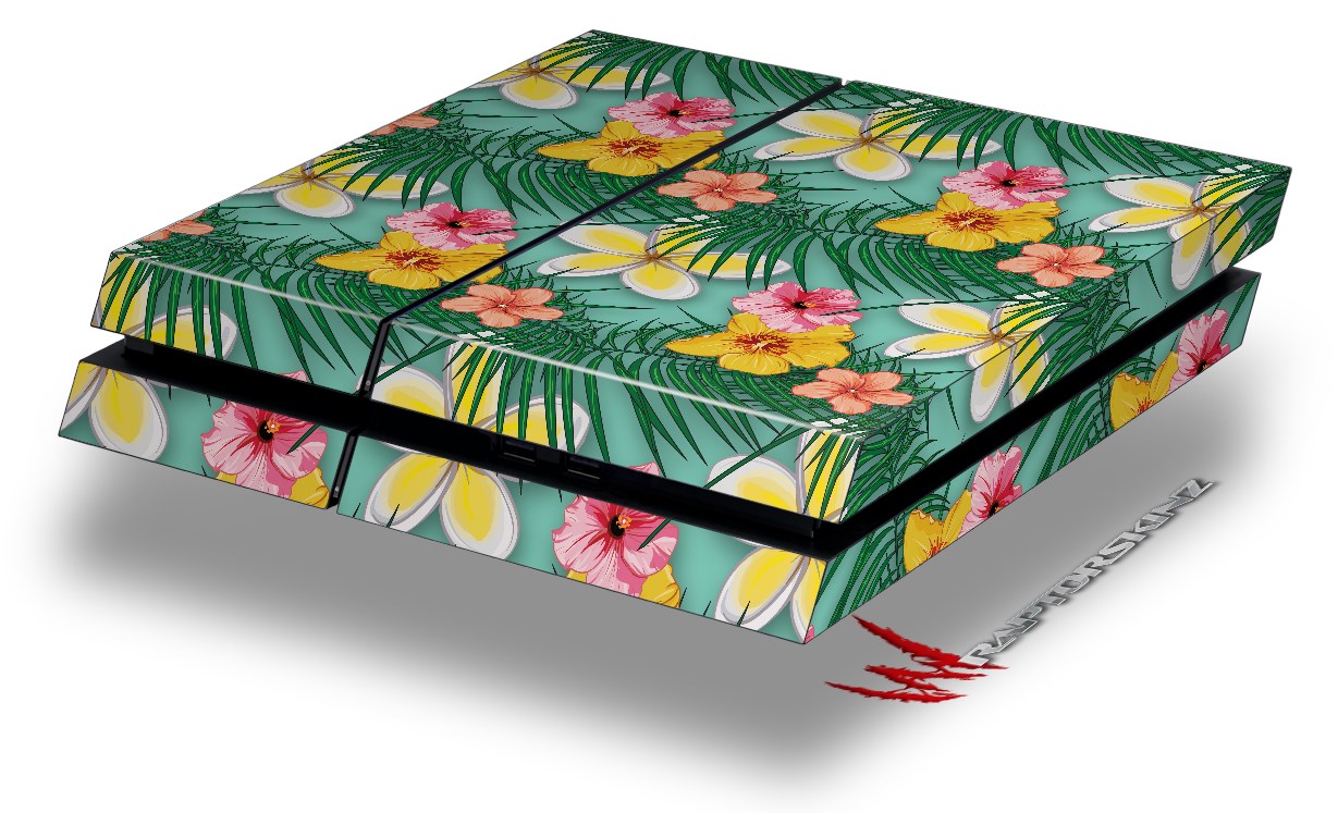 Vinyl Decal Skin Wrap compatible with Sony PlayStation 4 Original Console Beach Flowers 02 Seafoam Green (PS4 NOT INCLUDED)