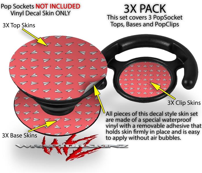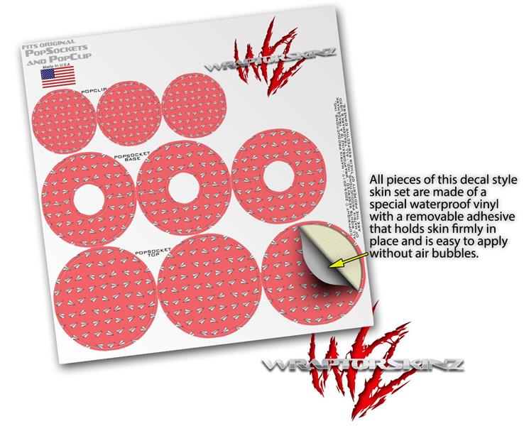 Decal Style Vinyl Skin Wrap 3 Pack for PopSockets Paper Planes Coral (POPSOCKET NOT INCLUDED)