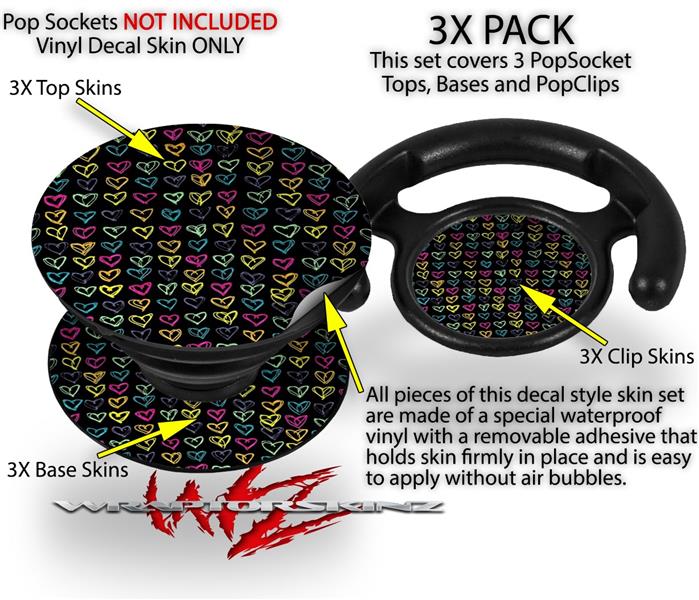 Decal Style Vinyl Skin Wrap 3 Pack for PopSockets Kearas Hearts Black (POPSOCKET NOT INCLUDED)