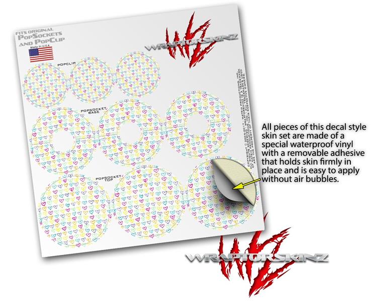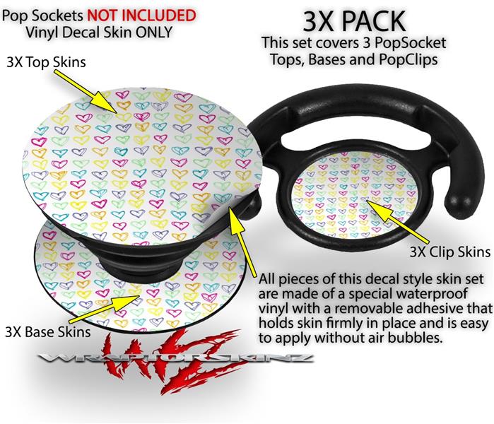 Decal Style Vinyl Skin Wrap 3 Pack for PopSockets Kearas Hearts White (POPSOCKET NOT INCLUDED)