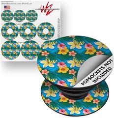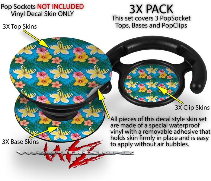 Decal Style Vinyl Skin Wrap 3 Pack for PopSockets Beach Flowers 02 Blue Medium (POPSOCKET NOT INCLUDED)