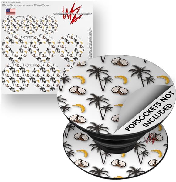 Decal Style Vinyl Skin Wrap 3 Pack for PopSockets Coconuts Palm Trees and Bananas White (POPSOCKET NOT INCLUDED)