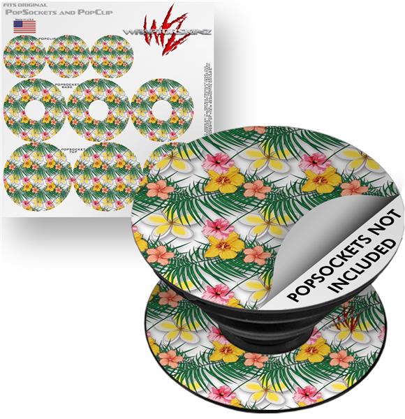 Decal Style Vinyl Skin Wrap 3 Pack for PopSockets Beach Flowers 02 White (POPSOCKET NOT INCLUDED)