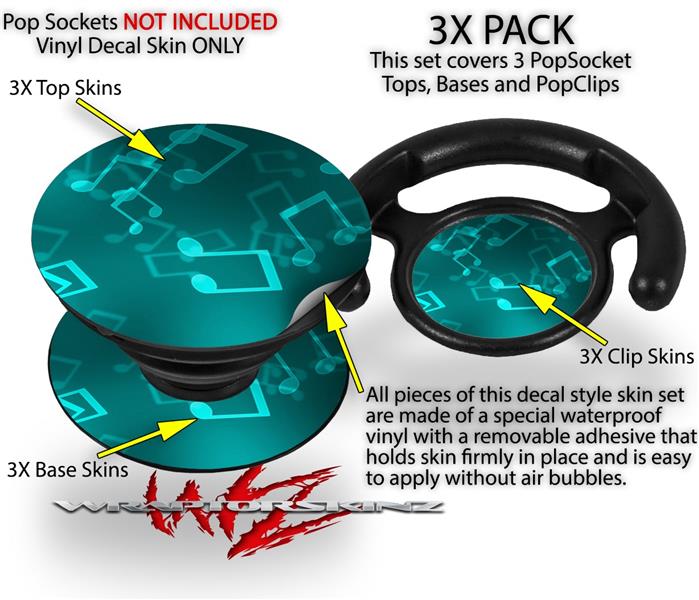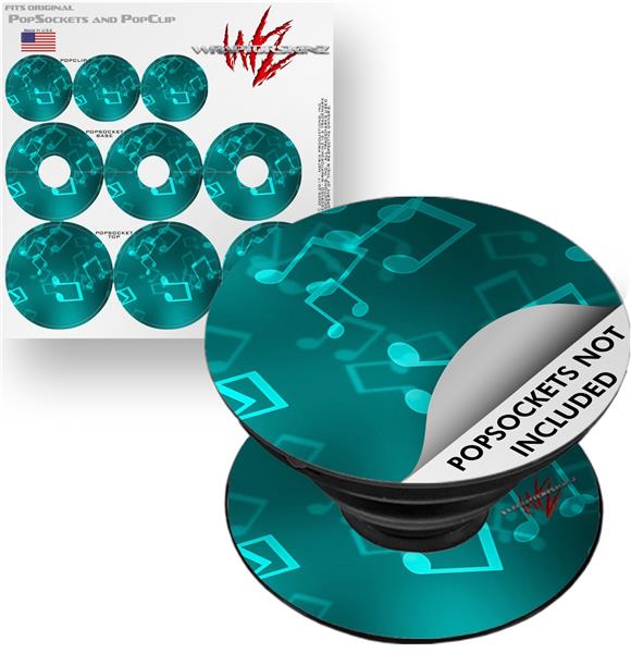 Decal Style Vinyl Skin Wrap 3 Pack for PopSockets Bokeh Music Neon Teal (POPSOCKET NOT INCLUDED)